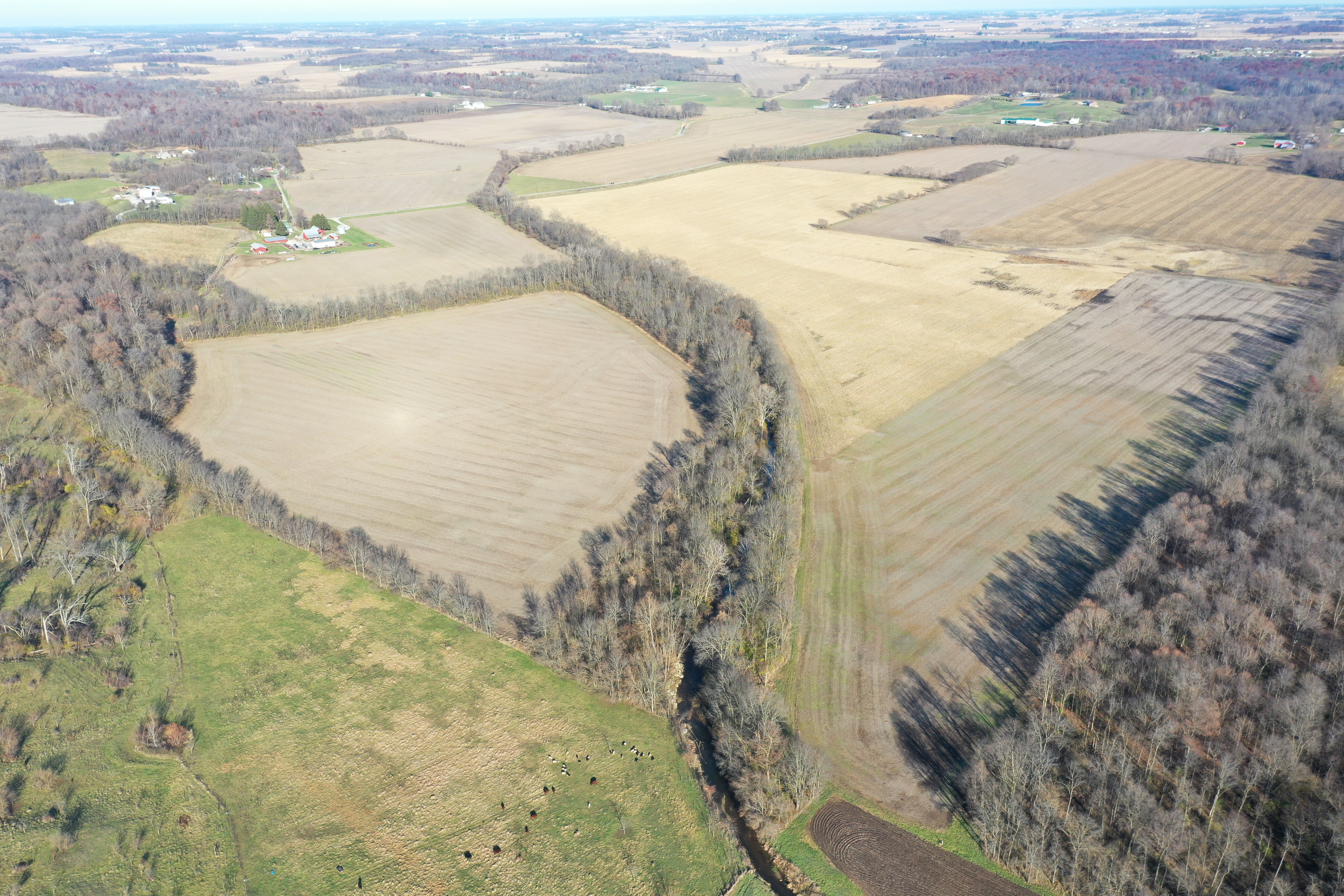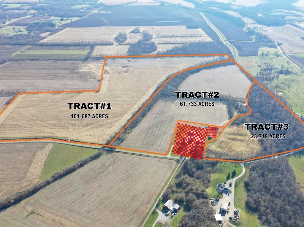 This 187 Acres lays along the East Fork Whitewater River in Darke Co. Ohio. Situated in Western Ohio this property is not only a highly productive farm, but also has great wildlife, peaceful setting and potential for a future homesite. The tillable acres feature soil types like Westland Silty Clay Loam, Eldean Loam, & Ockley Silt Loam. The 23 Acres of Tract 3 offers a mature woods with a creek through the center, and a grassy hill that overlooks the farm. Currently the farm is all under one parcel, however a new survey has been completed and new parcel numbers will be applied if the tracts all sell to separate buyers.