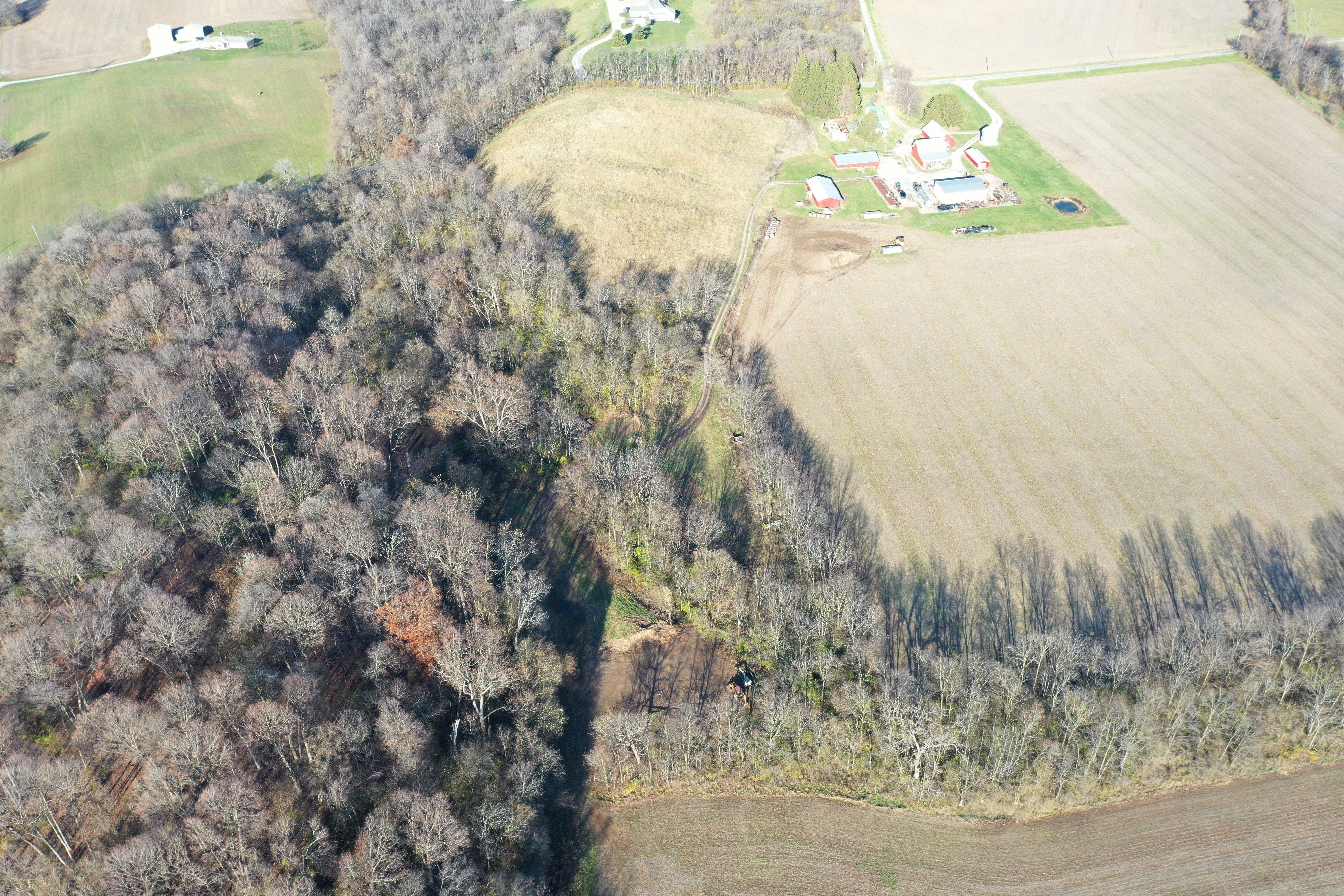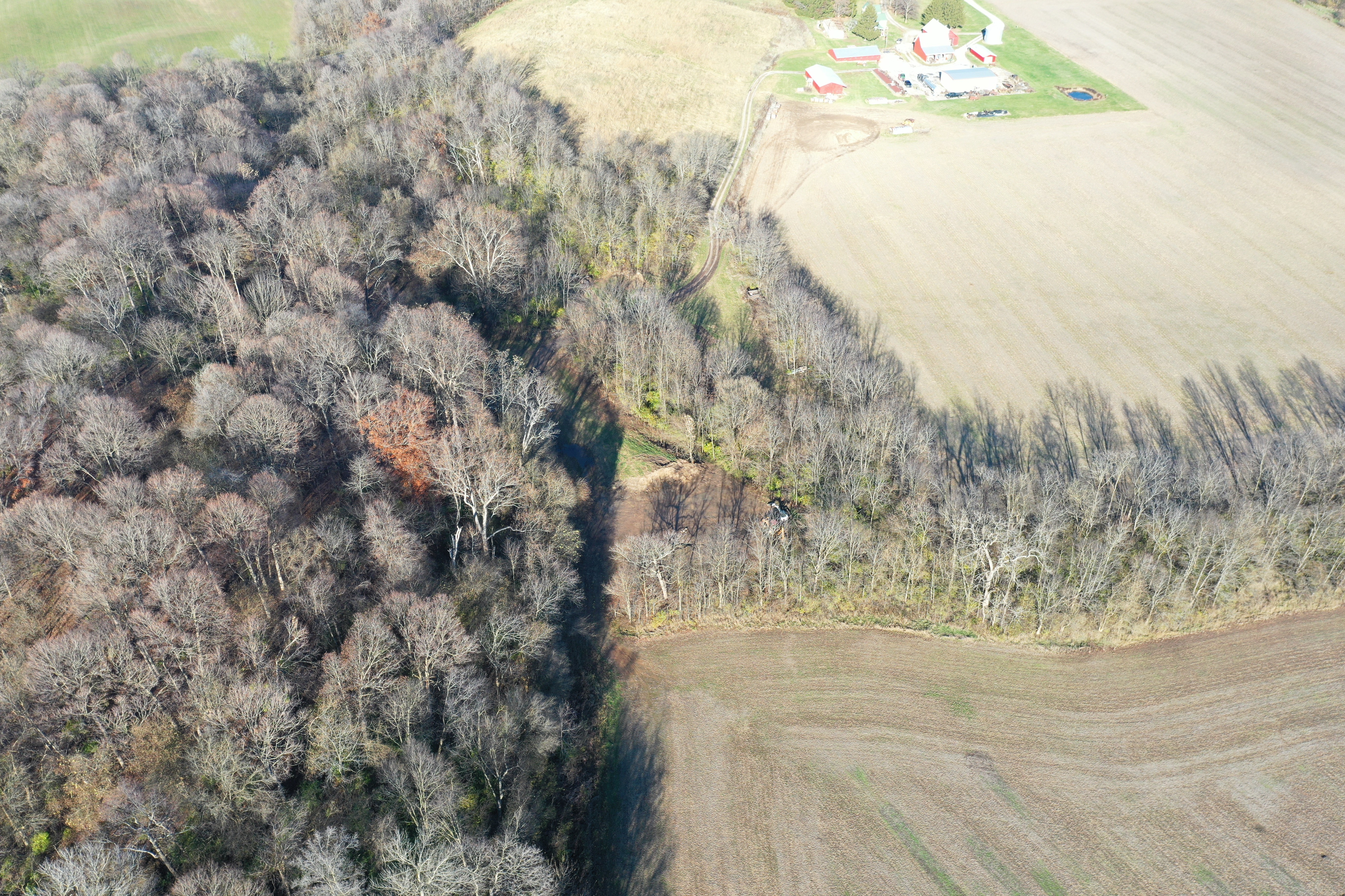 Tract 3 features roughly 23 acres of mature woodland, open grass, and a meandering creek through the center. The gentle rise on the west side overlooks the surrounding farmland, creating a beautiful potential home or cabin site.