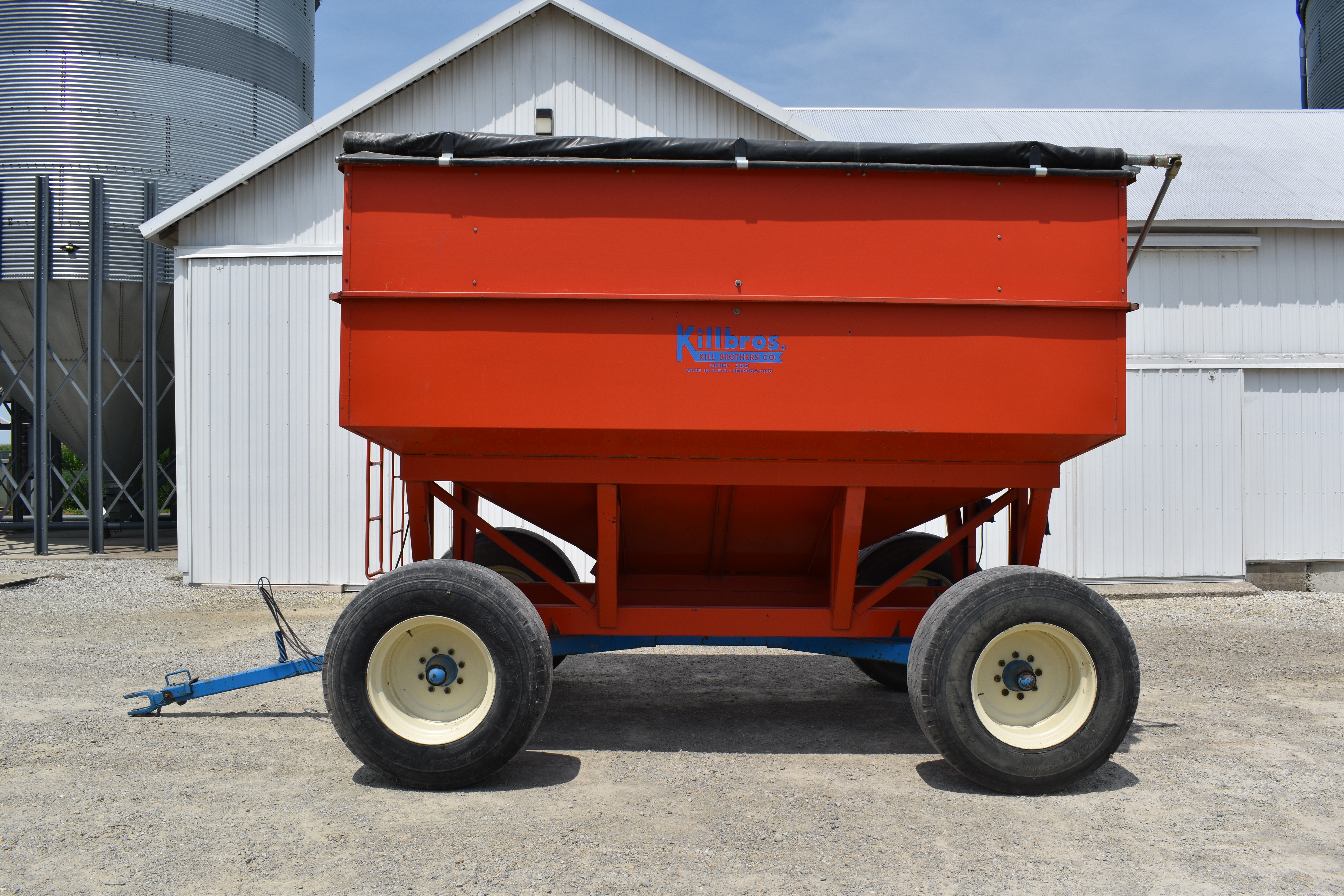 GRAVITY WAGONS: Killbros 385 Gravity wagon mounted on Killbros 1386 running gear, 385 bushel, front ladder, lights, Shur Lok Roll Tarp, Rear hitch, 385/65R22.5 Tires; Killbros 385 Gravity Wagon, Side discharge, Rainbow Industries Roll Tarp, Front Ladder Rear Hitch, lights; Rotary Mowers: Bush Hog 296 Rotary Mower 3 point mount, 540 PTO, rear wheel, SN: 12-06378; GPS Receivers: Starfire 6000 Reciever with SF 1 activation; John Deere Starfire 6000 Reciver with RTK Activation;