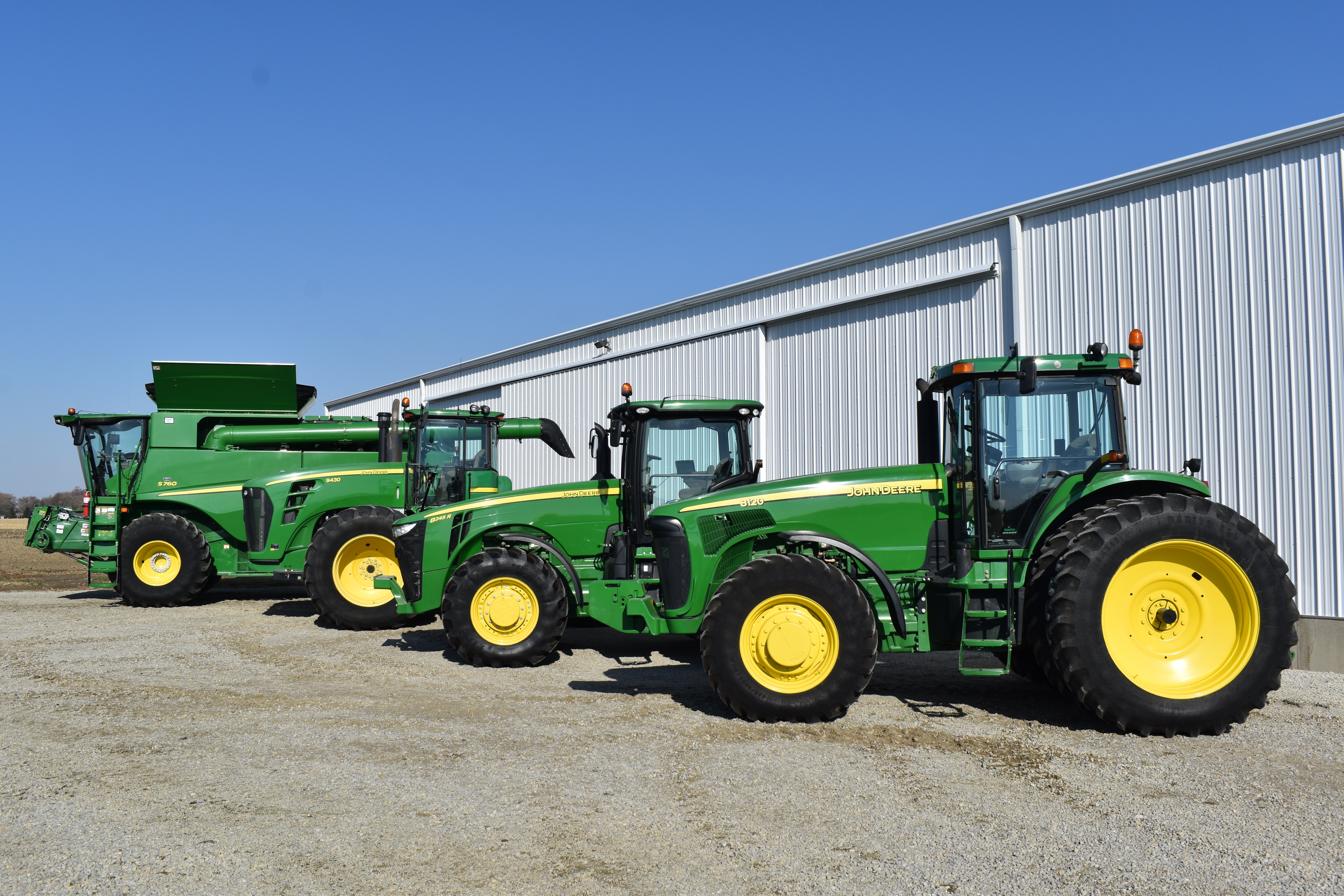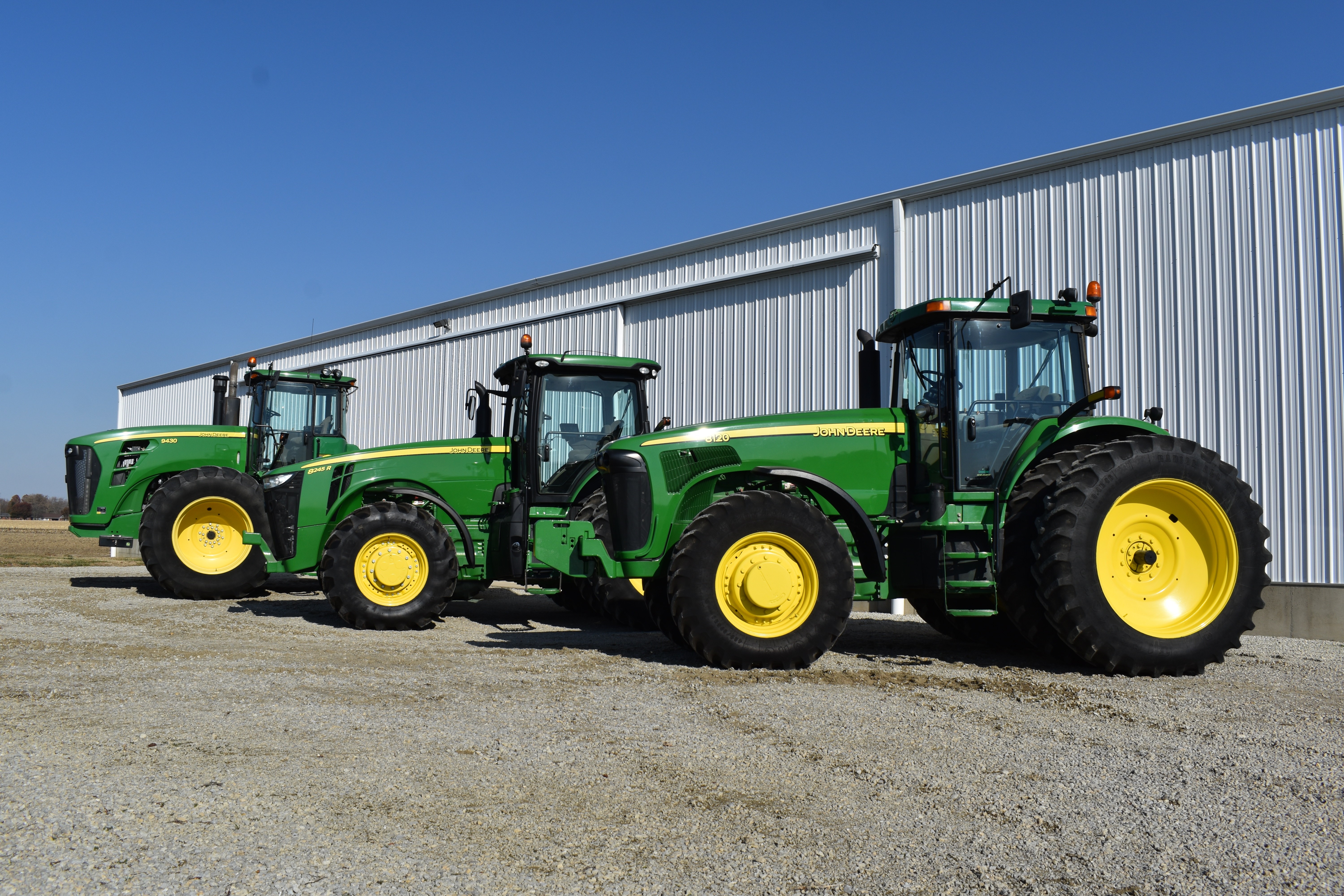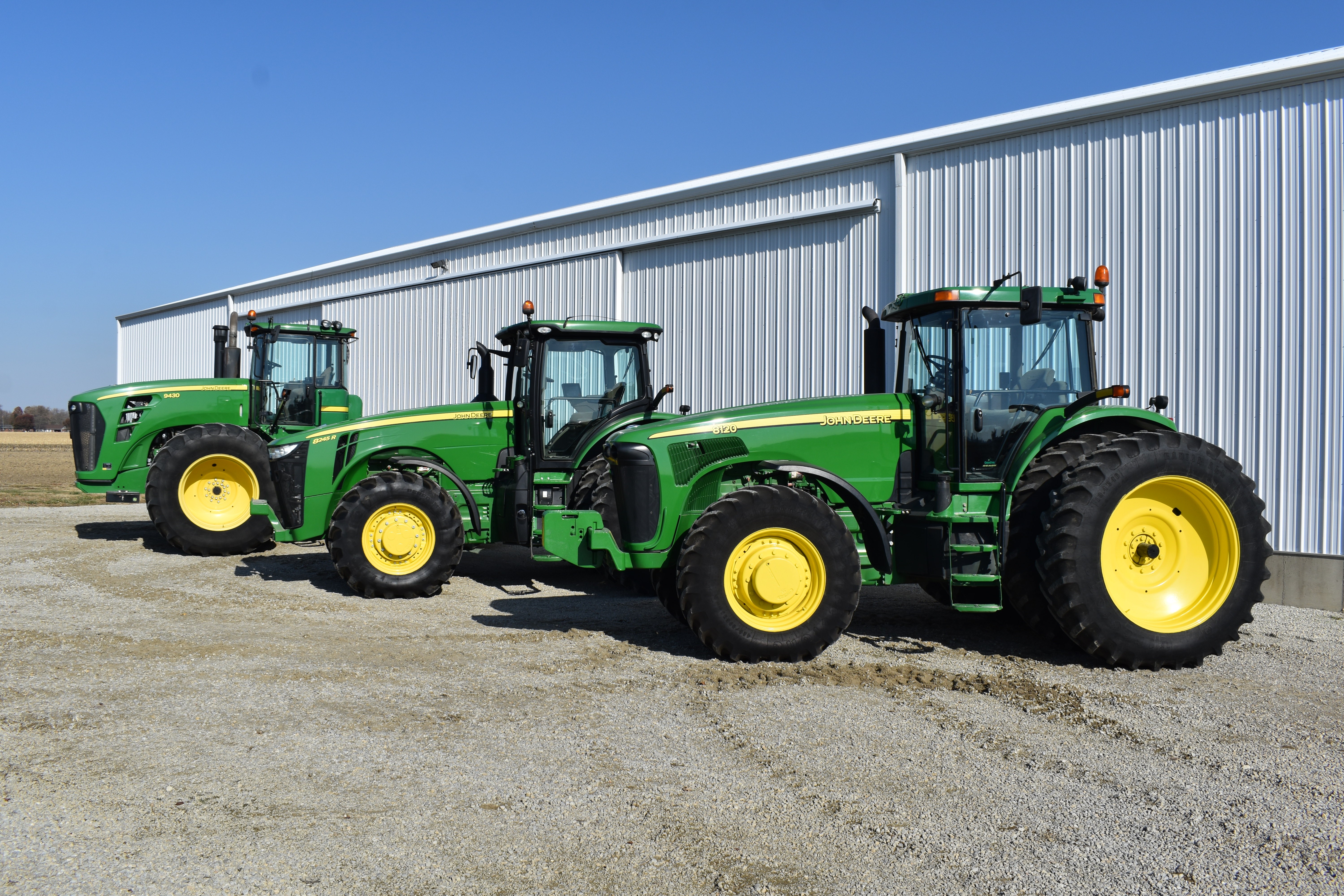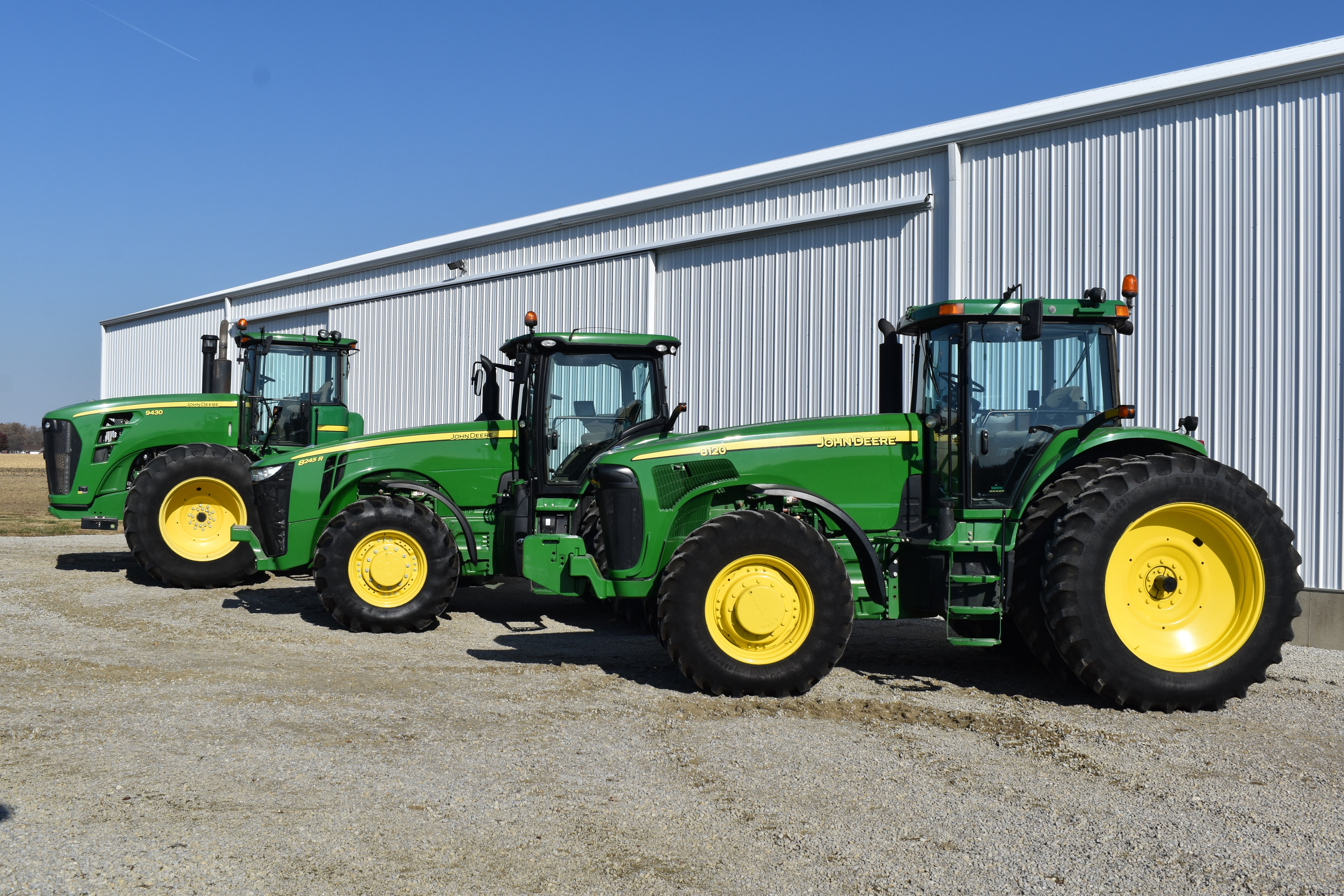 TRACTORS: 2011 John Deere 9430 tractor-2,705 hrs, 4 remotes, cab, heat/air, radio, articulating, 2nd owner, This tractor is in excellent condition and has been very meticulously maintained, SN#1RW9430PLBP023487; 2017 8245R tractor-2,331 hrs, powershift transmission, 4 remotes, 1000 PTO, quick hitch, rear duals, front fenders, LED lights, cab, heat/air, radio, This tractor is in excellent condition and has been very well maintained, This tractor will be used this fall in harvest so hours will go up slightly. SN#1RW8245RCHP121210; 2004 John Deere 8120 tractor-4,422 hrs, powershift transmission, 4 remotes, 1000 PTO, rear duals, front fenders, quick hitch, cab, heat/air, radio, JD link, this tractor is in excellent condition and has been very well maintained, This tractor will be used this fall in harvest so hours will go up slightly. SN#RW8120P022809;