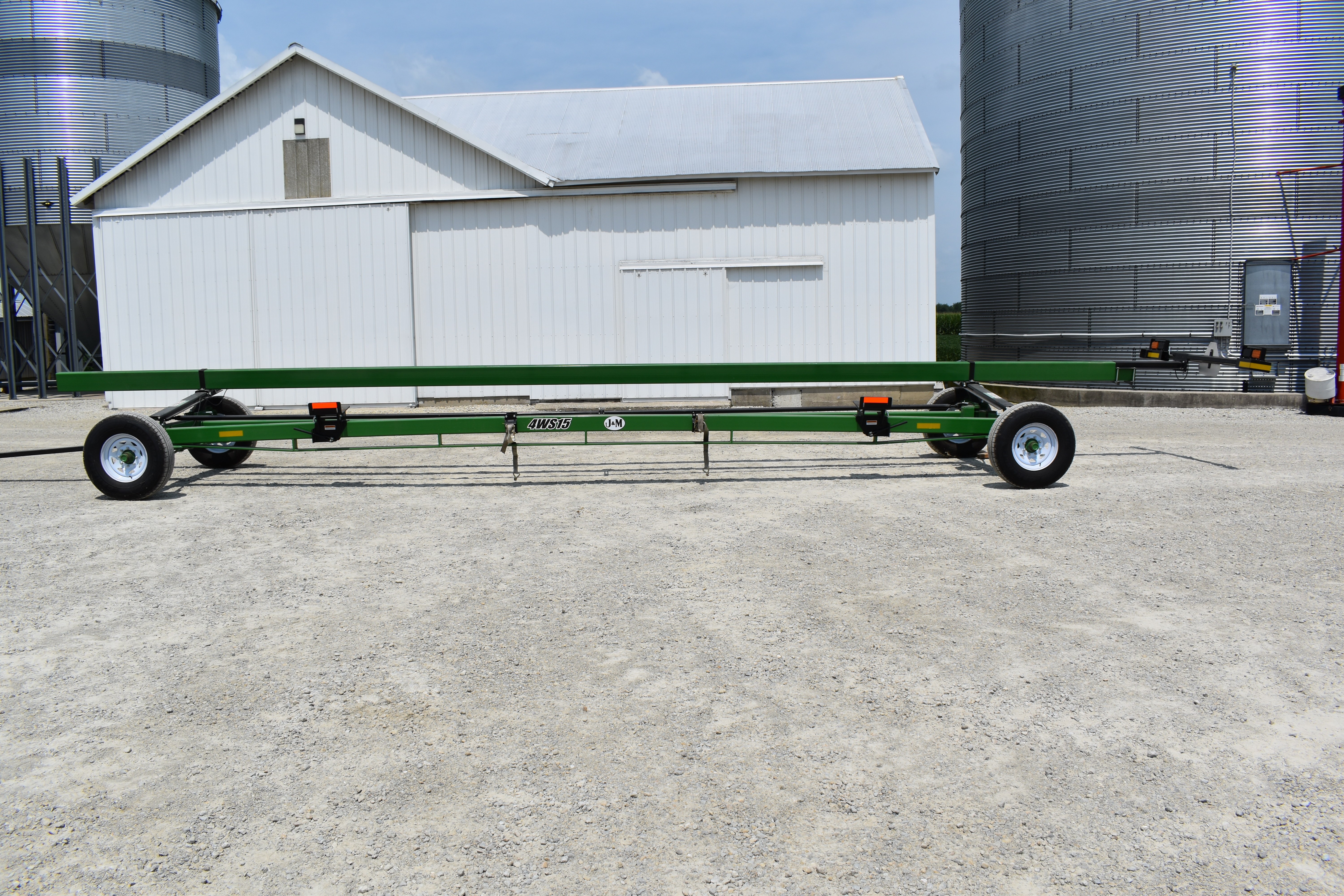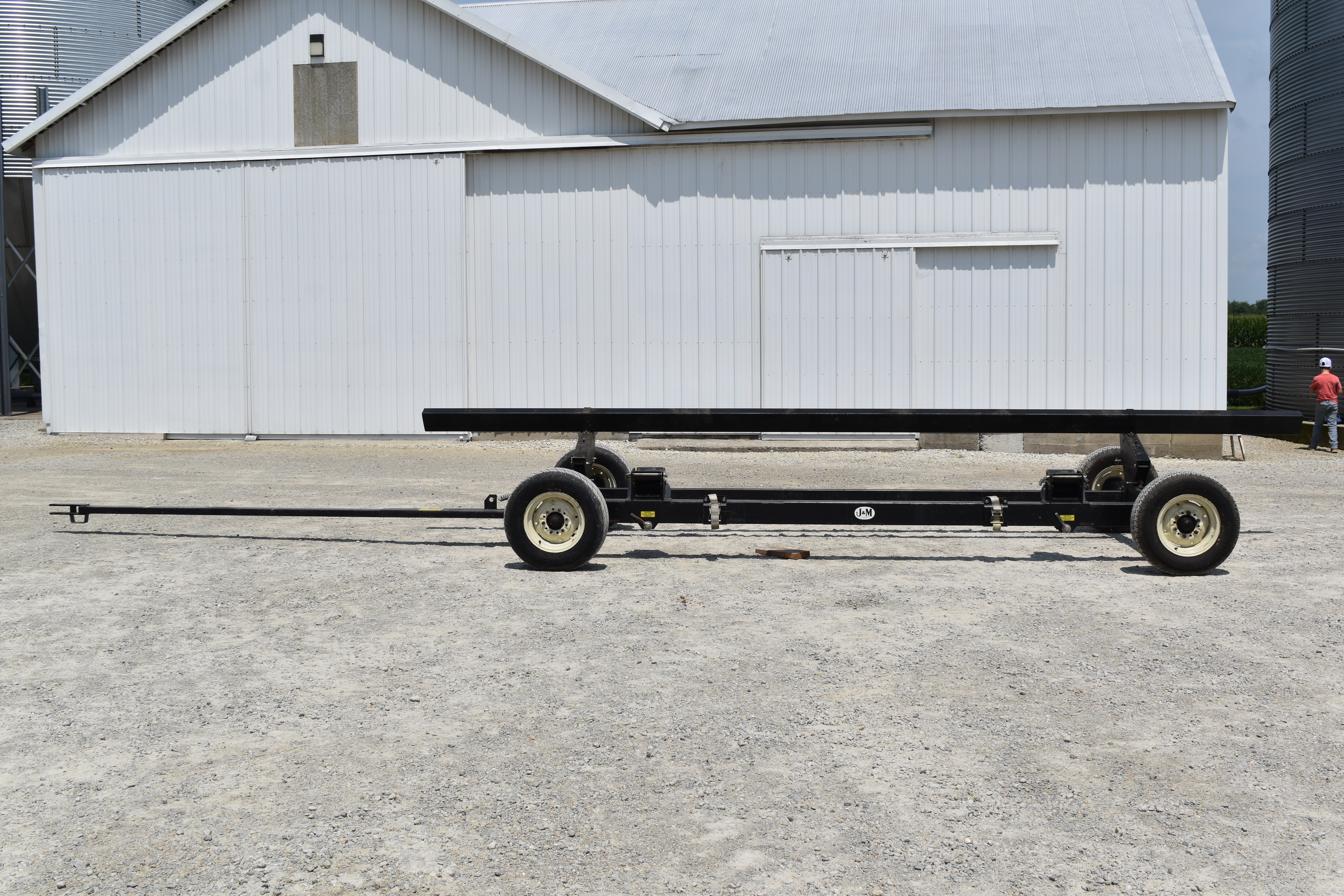 HEADER CARTS: 2018 J&M 4WS15 All Steer Header Cart, 38ft long lights, adjustable feet and adjustable, rail hight, SN# 1803256; J&M header cart, 21 FT. long, was used for 8 row corn head, SN#6486;