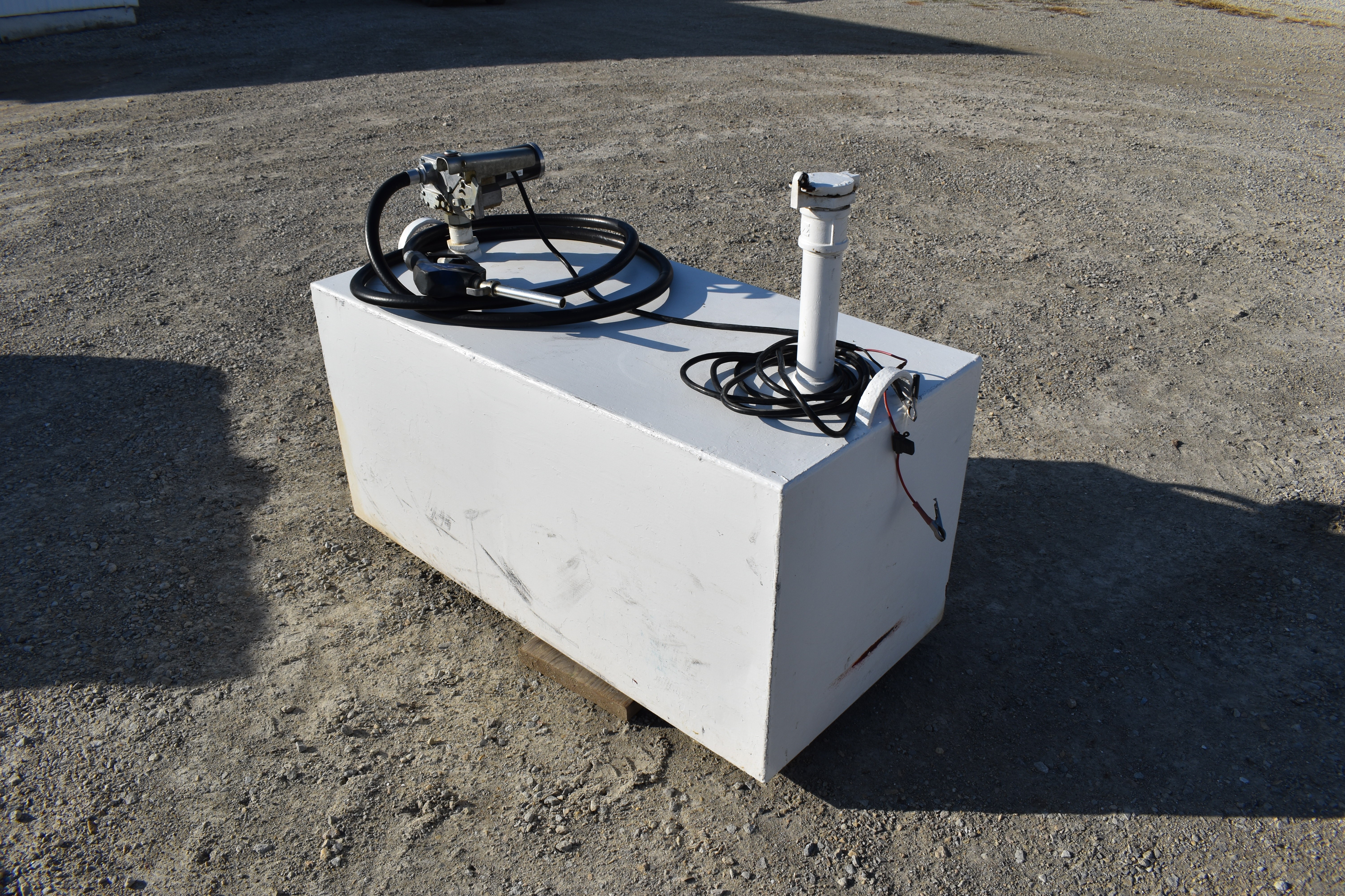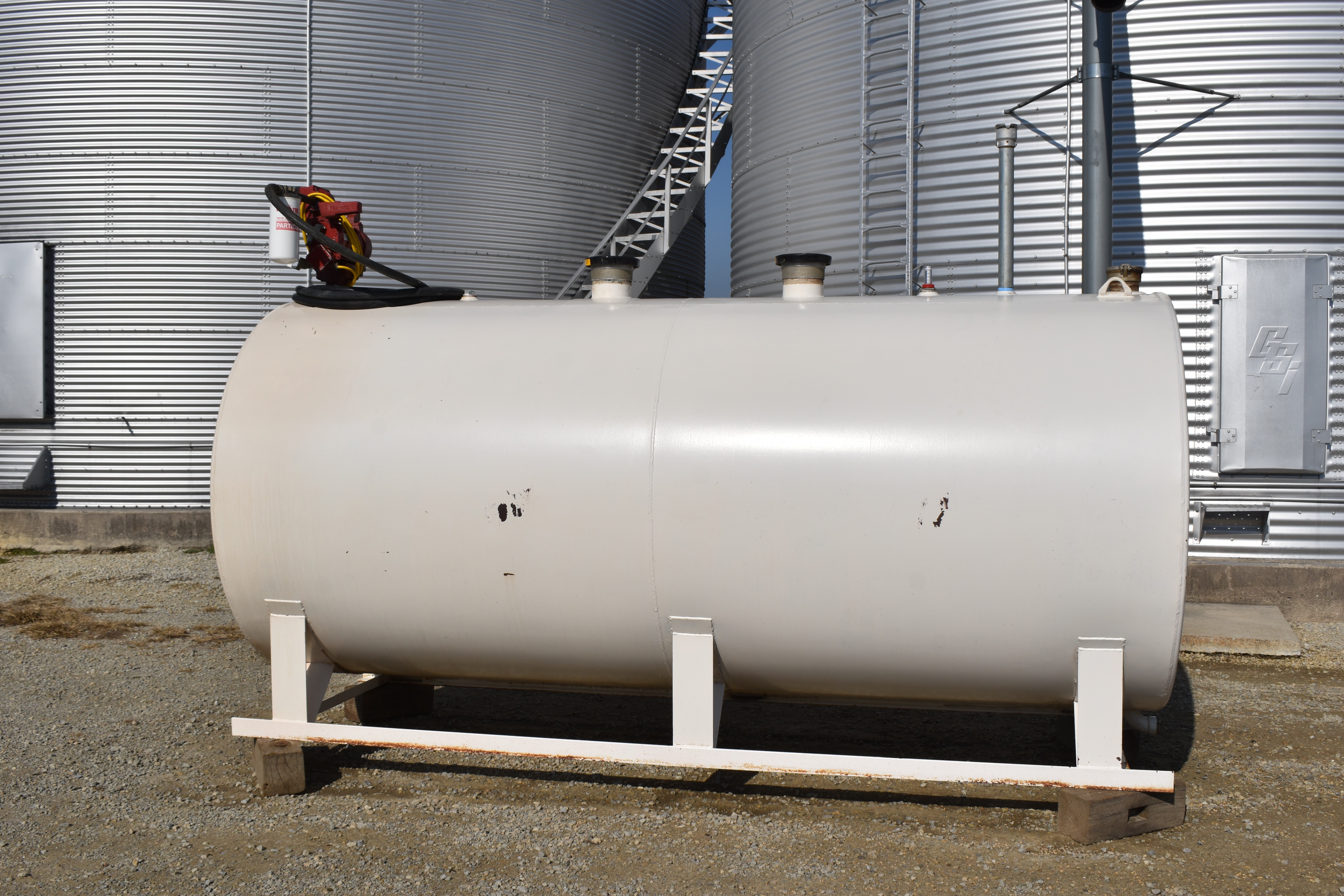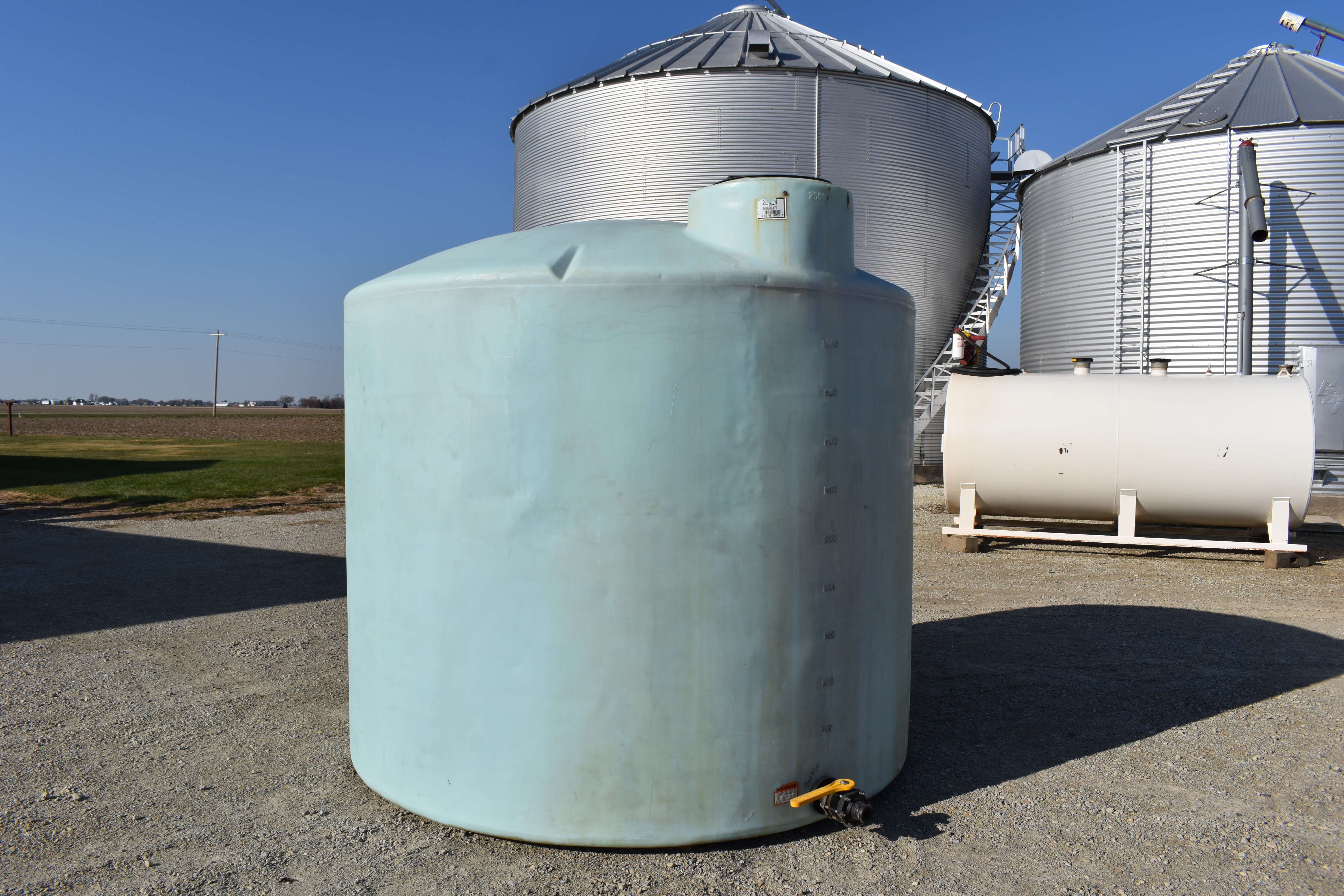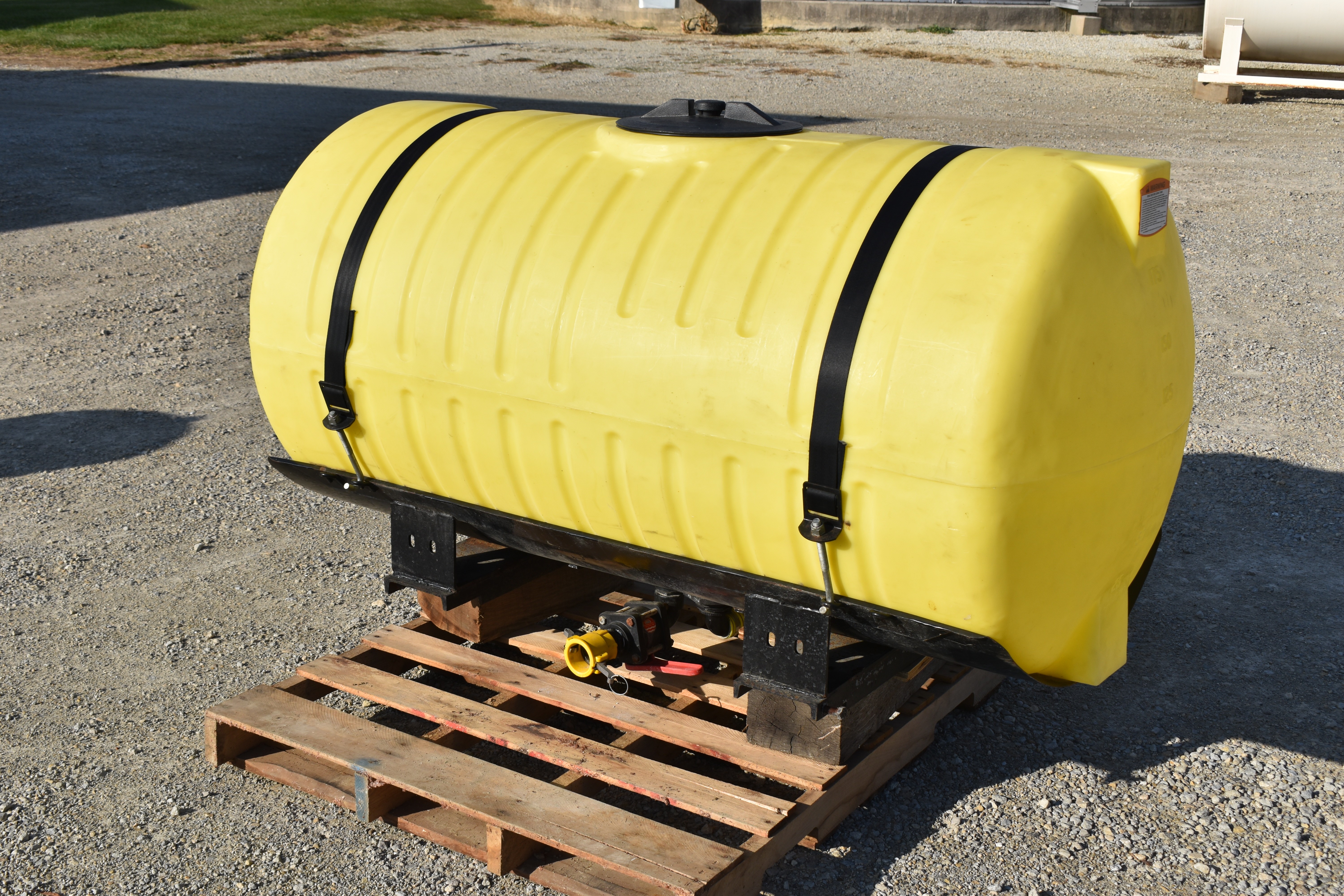 PUMPS: Briggs and Stratton Gas Powered Pump; Rate Controllers: Raven SCS440 Rate Controler with nozzels, and plugs; Storage Tanks: (2) 2,500 Gallon Poly Tanks; 1600 Gallon Poly Tank, center top fill, 2 inch outlet; 1,550 Gallon Poly Tank; 60 Gallon Inductor tank; (2) 30 Gallon Inductor Tanks; 15 Gallon Inductor Tank; 2,000 Gallon Double Wall Fuel Tank, with pump; 1,000 Gallon Fuel Tank, with pump; 100 Gallon Fuel Transfer Tank With 12 Volt Pump; MISC. 8Ft Meyers Snow Plow, Scraper Blade