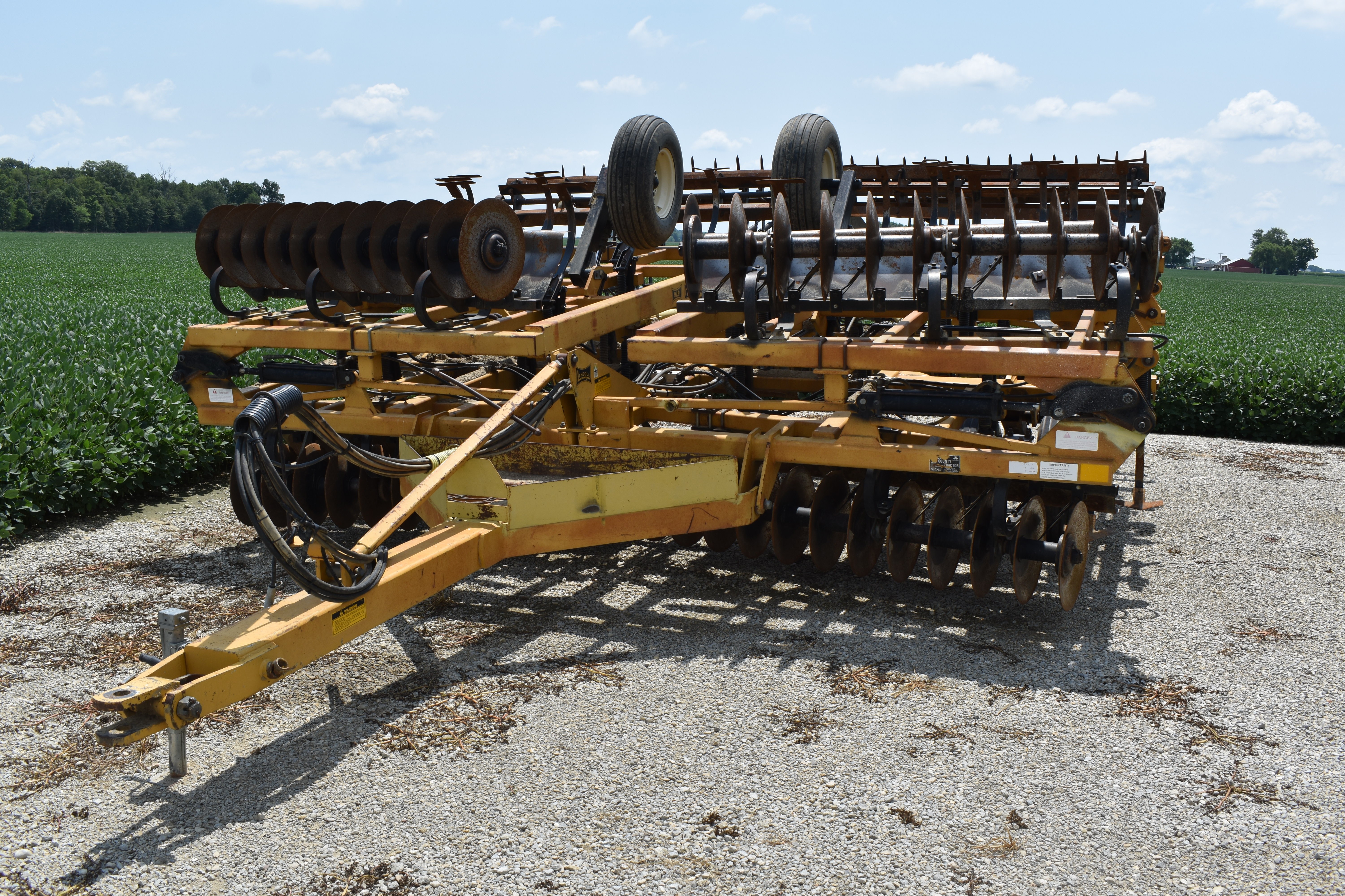 TILLAGE EQUIPMENT: J&M TF212 rolling basket, 32 FT. working width, hydraulic raise and lower, hydraulic fold, Low use on this implement and meticulously maintained, SN#2040006; Landoll 30 foot, folding soil finisher, 3 section, hydraulic raise & lower, 3 bar spike drag, rear hitch;